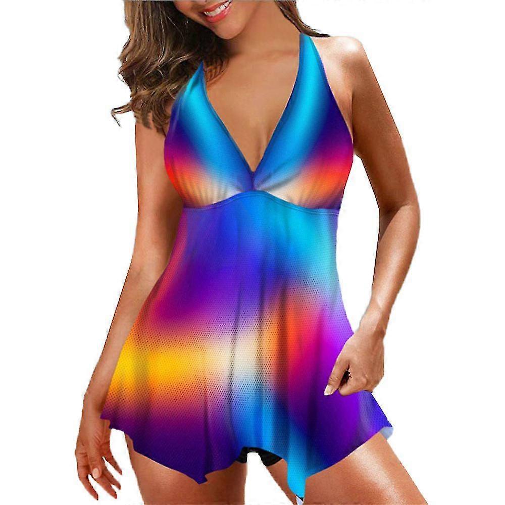 Plus Size Women Padded Swimwear Tankini Set Swimsuit
