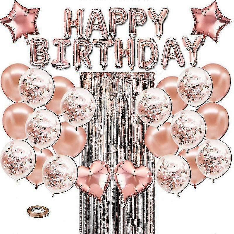 Balloons rose gold happy birthday balloons tinsel curtain set wedding birthday party decor