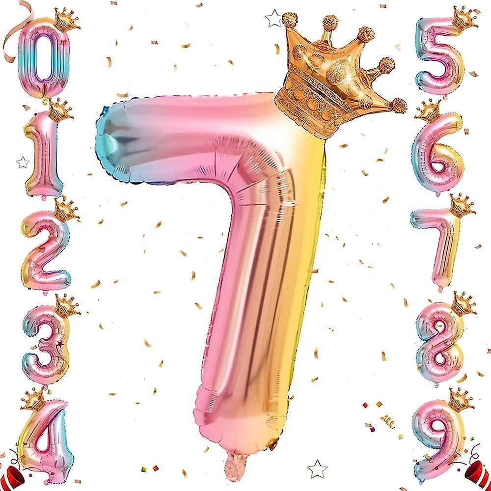Helium Foil Number Balloon, 32 Inch Rainbow Gradient Number Balloons with Crown for Birthday, Birthd