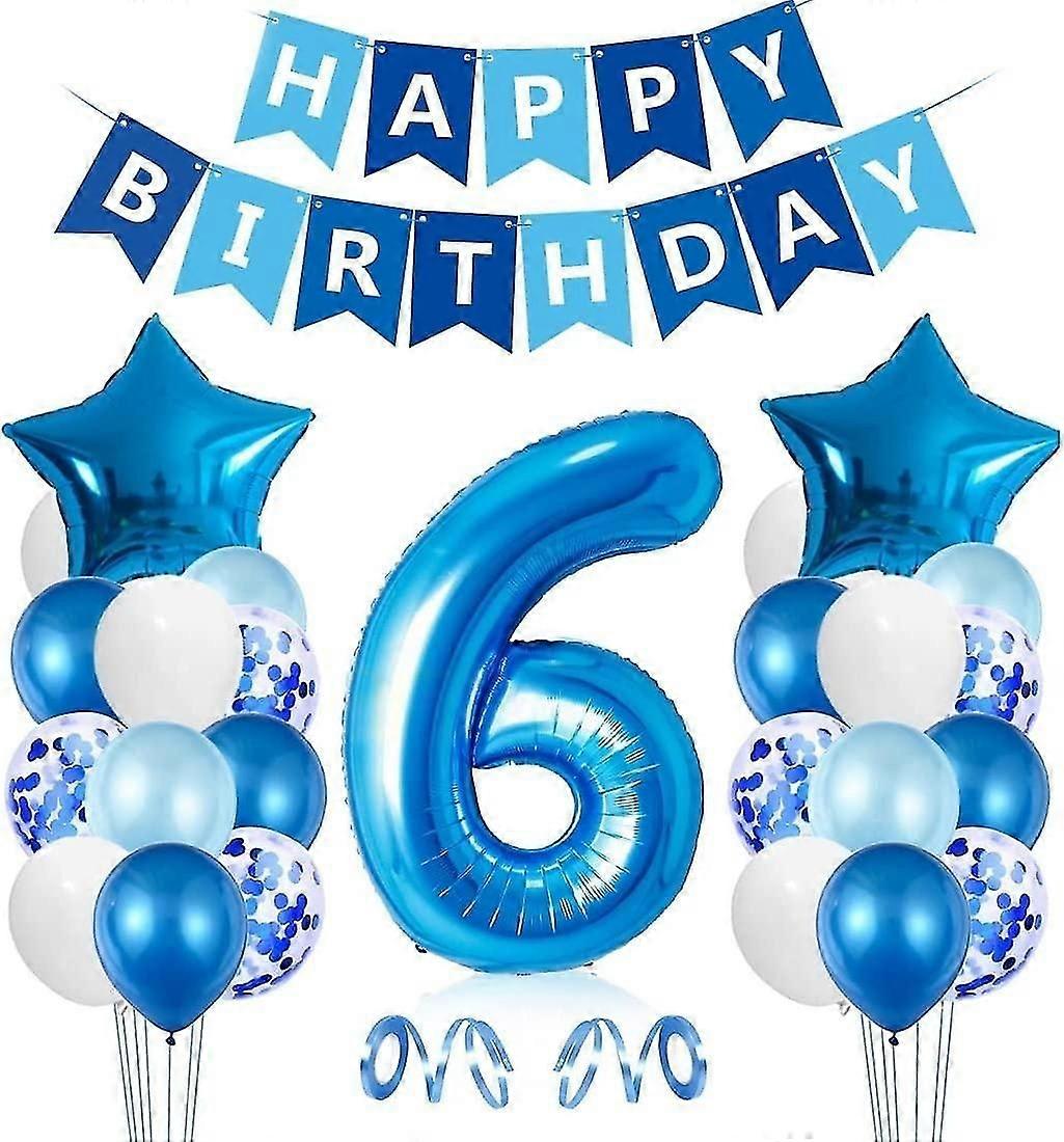 6 Year Old Boy Birthday Balloon, Blue 6 Year Old Birthday Decorations, Number 6 Birthday Balloons, L