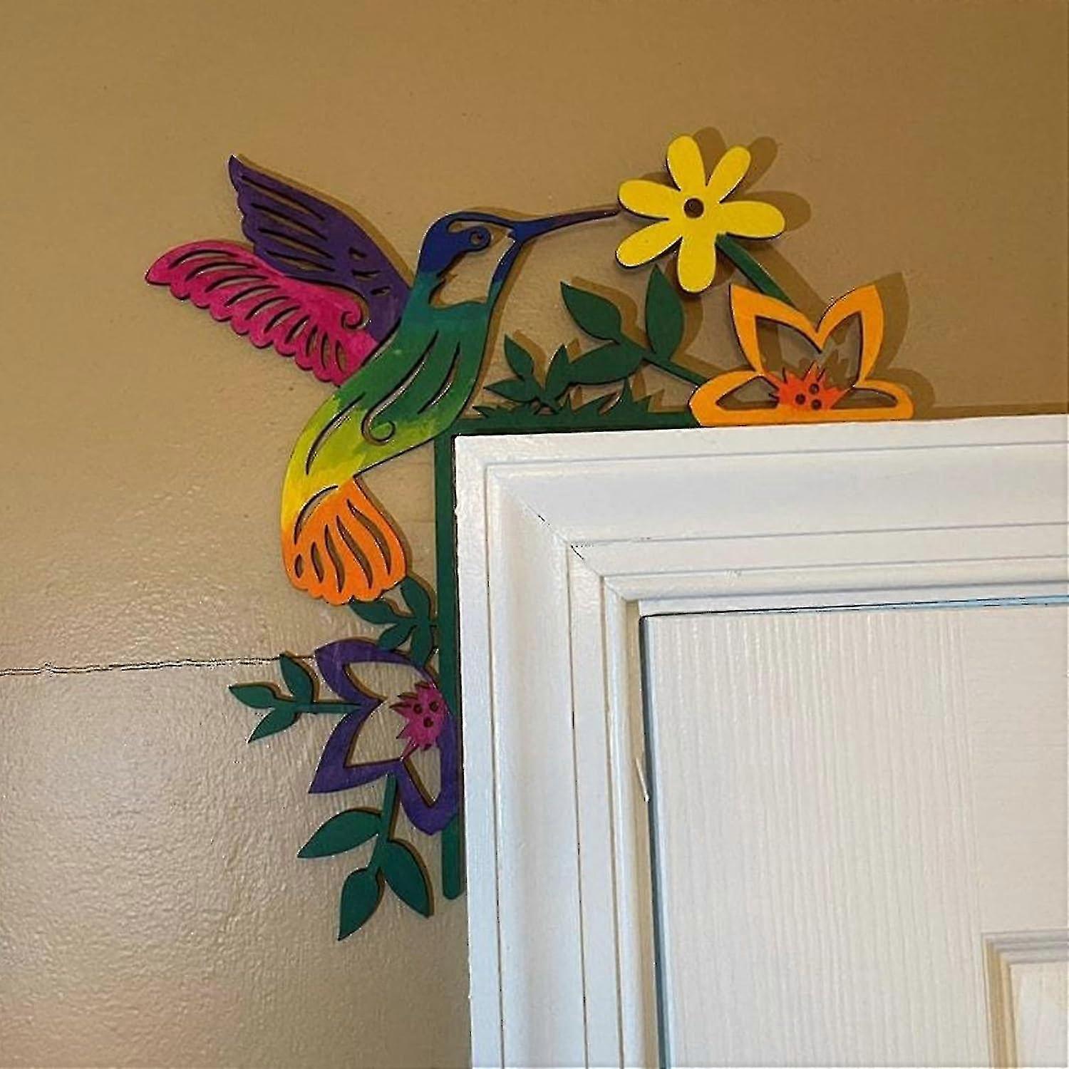 Hand Painted Door Topper, Hummingbird Door Frame Decoration, Funny Door Frame Wall Art Decor, Flower Door Double Sided Silhouette for Nature Lovers