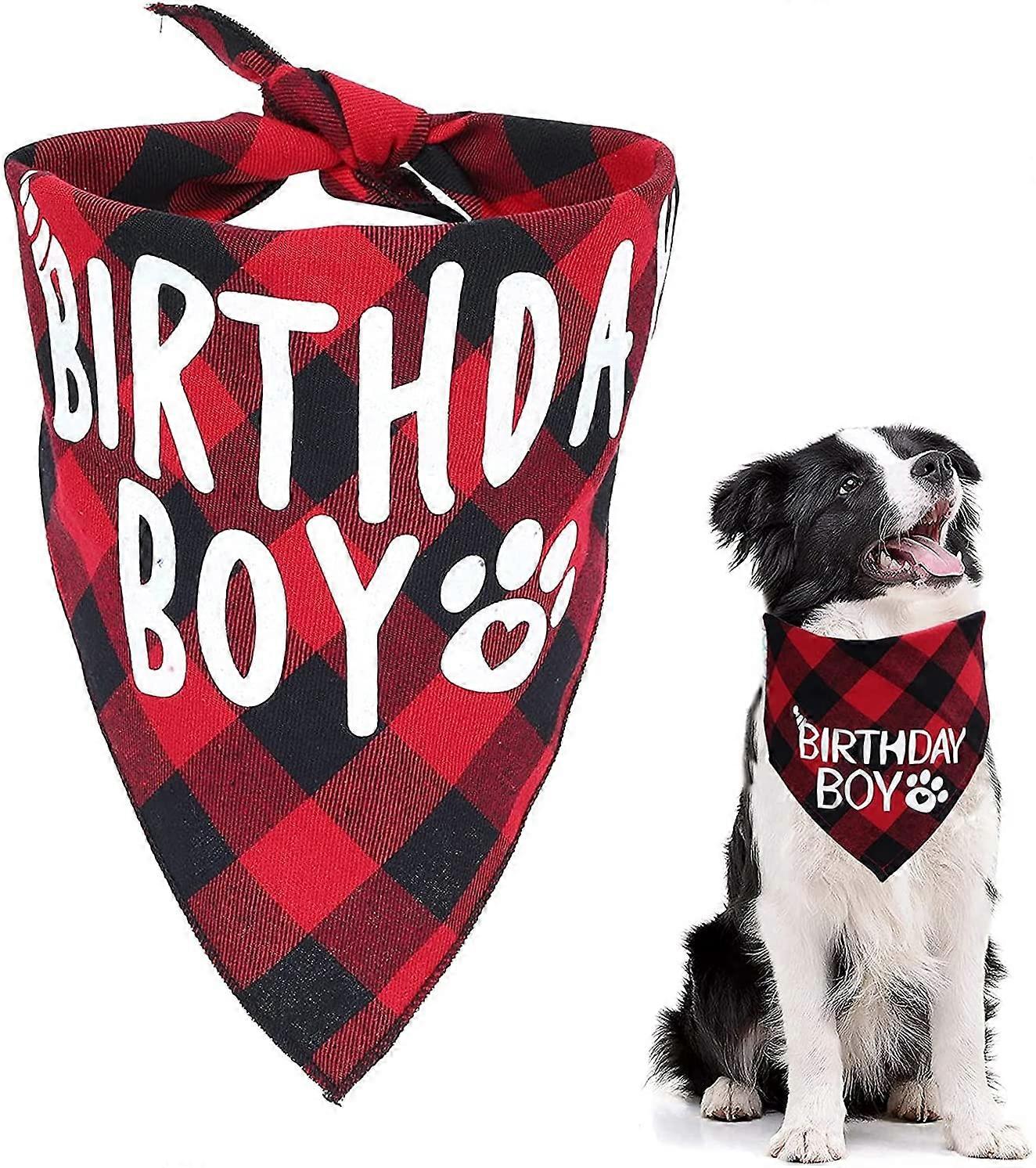 Dog Birthday Bandana, Dog Birthday Boy Bandana Plaid Triangle Scarf for Small Medium Pet Dogs Cats Party SuppliesDog Puppy Birthday