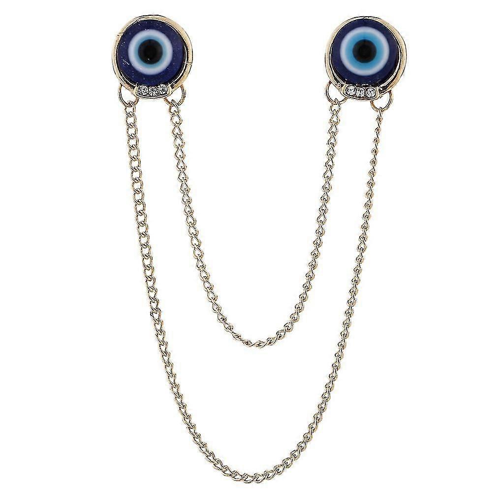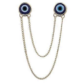 Men's Suits Blue Eyes Tassel Chains Shirt Collar Lapel Buckle Brooch Golden