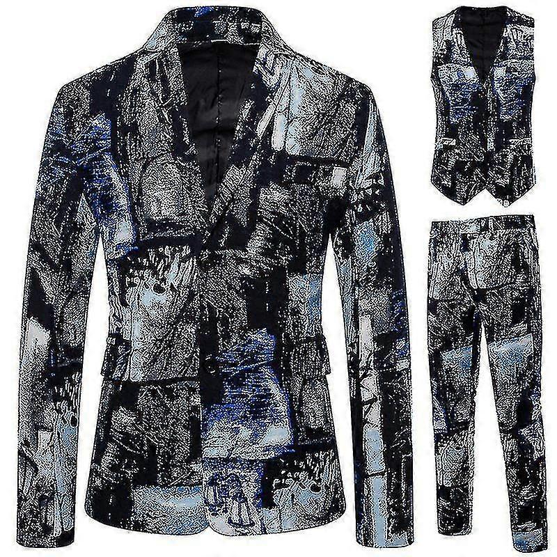 Men's Suits 3 Pcs Printed Suits, Stage Show Casual Jacket + Vest + Pants, Party Banquet Evening Dress Slim Fit
