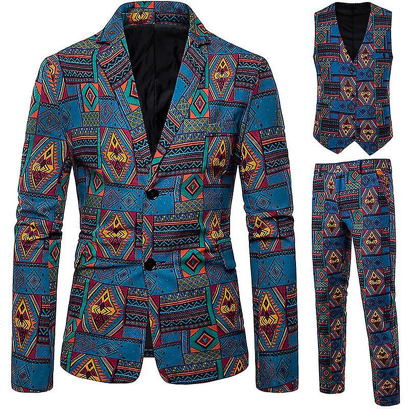 Men's Suits 3 Pcs Printed Suits, Stage Show Casual Jacket + Vest + Pants, Party Banquet Evening Dress Slim Fit
