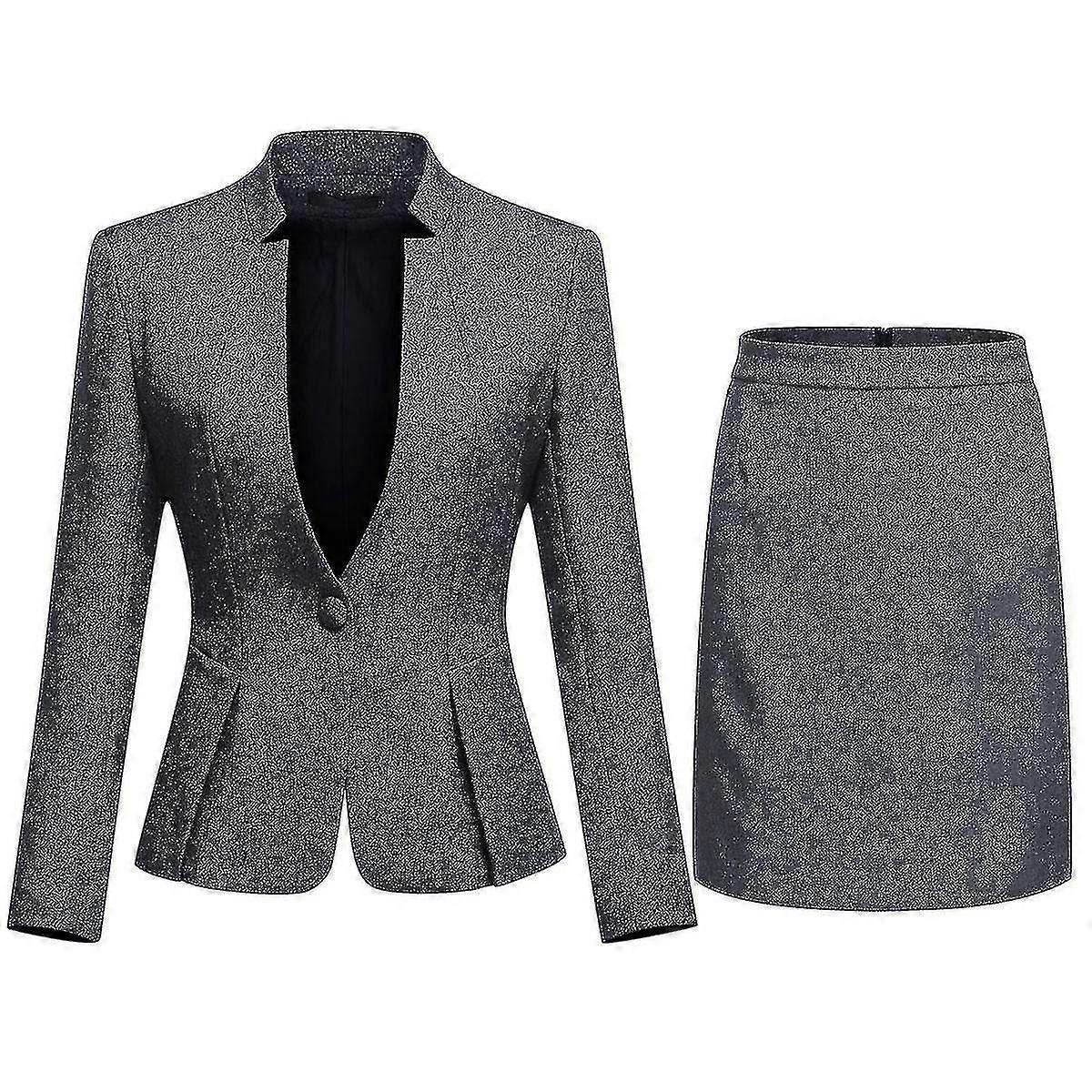Women's Business Suit 2 Pieces Stand Collar One Button Blazer Jacket And Skirt Set