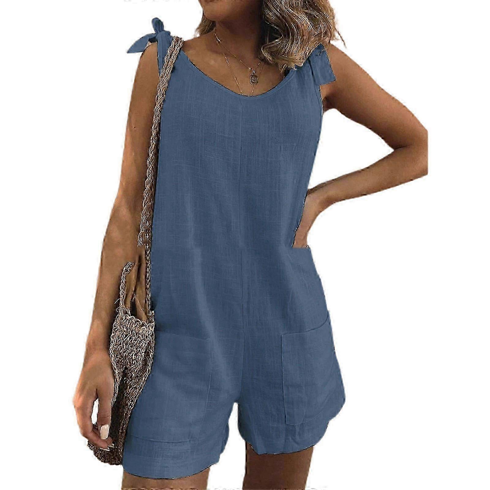 Lightweight Sleeveless Round Neck Jumpsuits with Pocket Romper Y2k Style Teenagers Loose Sleeveless Pant for Women Blue L