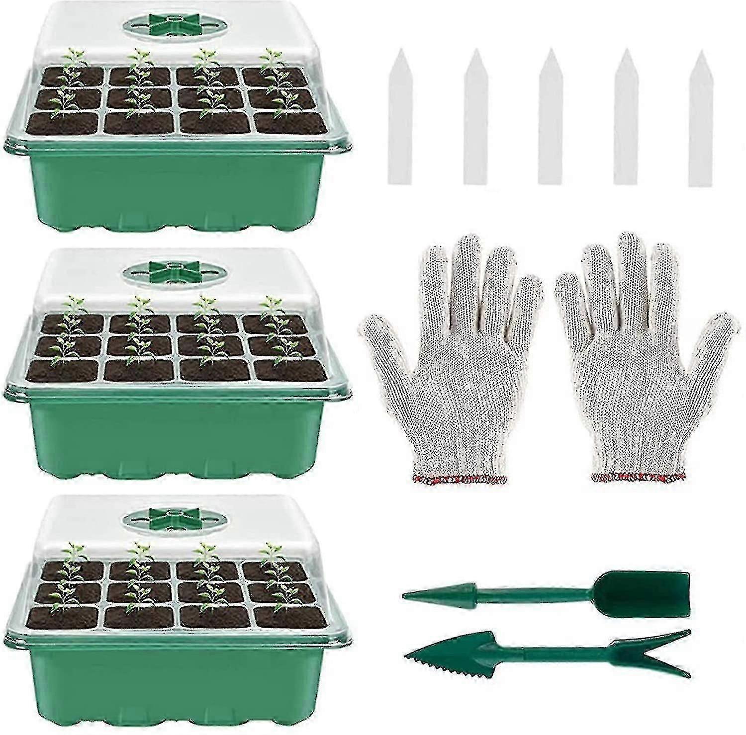 Transparent plants trays, you can easily observe your plants without opening the case. With drainage design, each bottom has drain holes for easy drainage. The tray has a bulit- in adjustable humidity window on the top, you can adjust the inner humidity from 50- 100%. Breathable and free gloves help to protect your palms and wrists from dirt and reducing the opportunity of injuries. Reusable and suitable for seeds, vegetables, plants, flowers and seedlings. Specification: Material: plastic. Plants Nursery Box Size: 19x11cm\/ 7. 48x4. 33inch. Label Size: 10x2cm\/ 3. 94x0. 78inch. Shovel Length: 16. 5cm\/ 6. 50inch. Gloves Length: 20cm\/ 7. 87inch. Packge Includes: 3 Plant Seed Grows Box; 1 pair of gloves; 5 labels; 2 shovels.