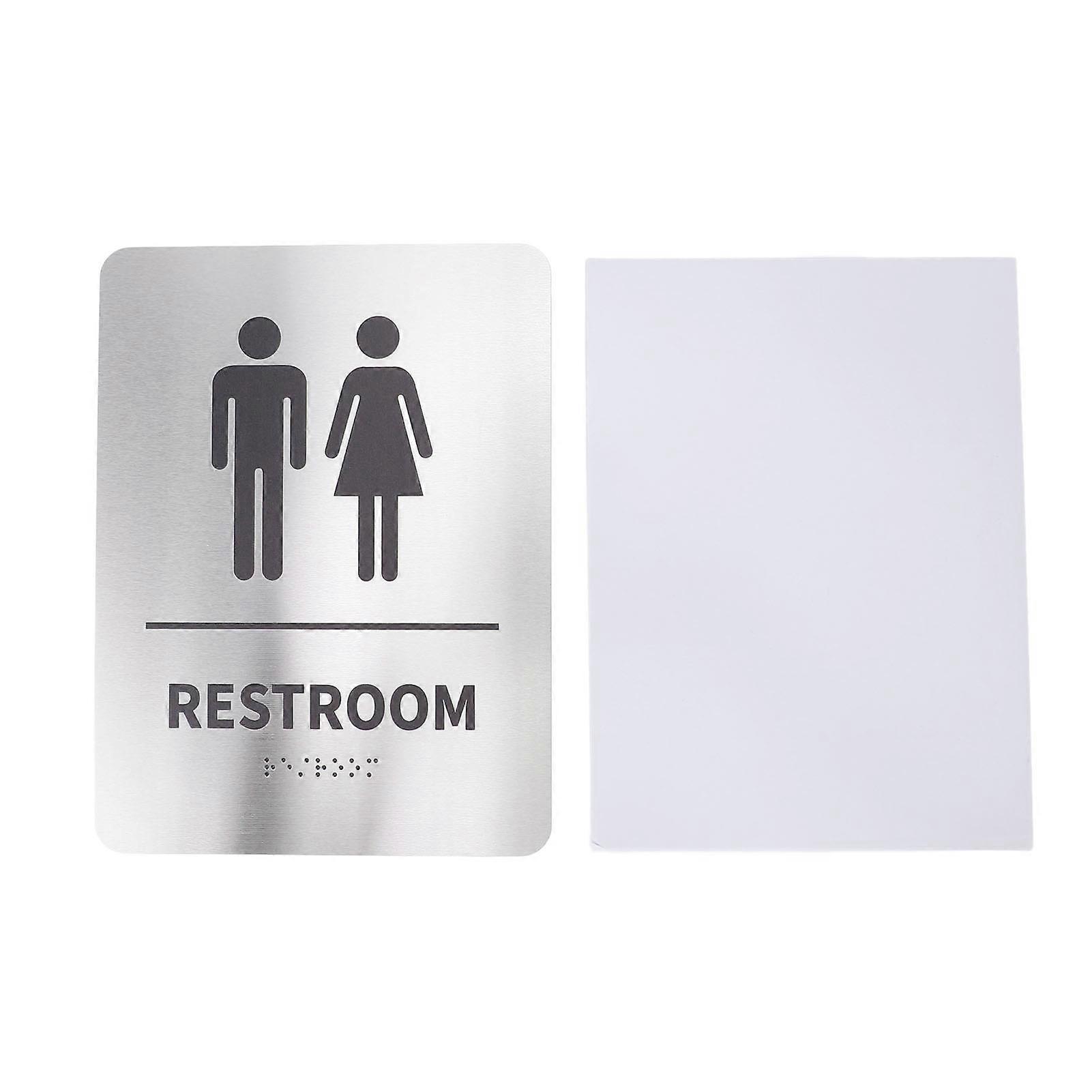 Braille Handicap Bathroom Sign 8 X 6in Self Adhesive Brushed Stainless Steel Unisex Restroom Sign for Businesses Offices
