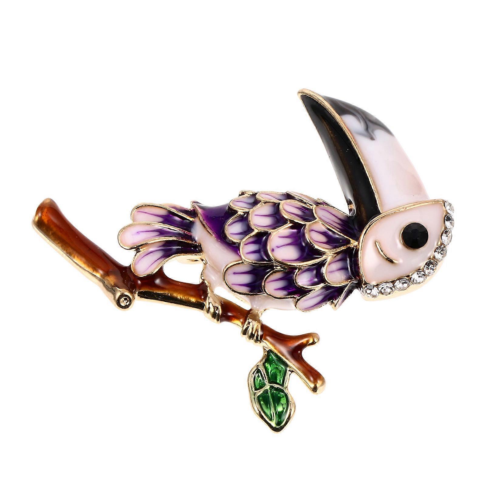 Cartoon Parrot Brooch with Rhinestone Inlay, Creative Alloy Animal Badge for Women, Fashionable Purple Oil Drop Pin for Clothing Accessories, Party &