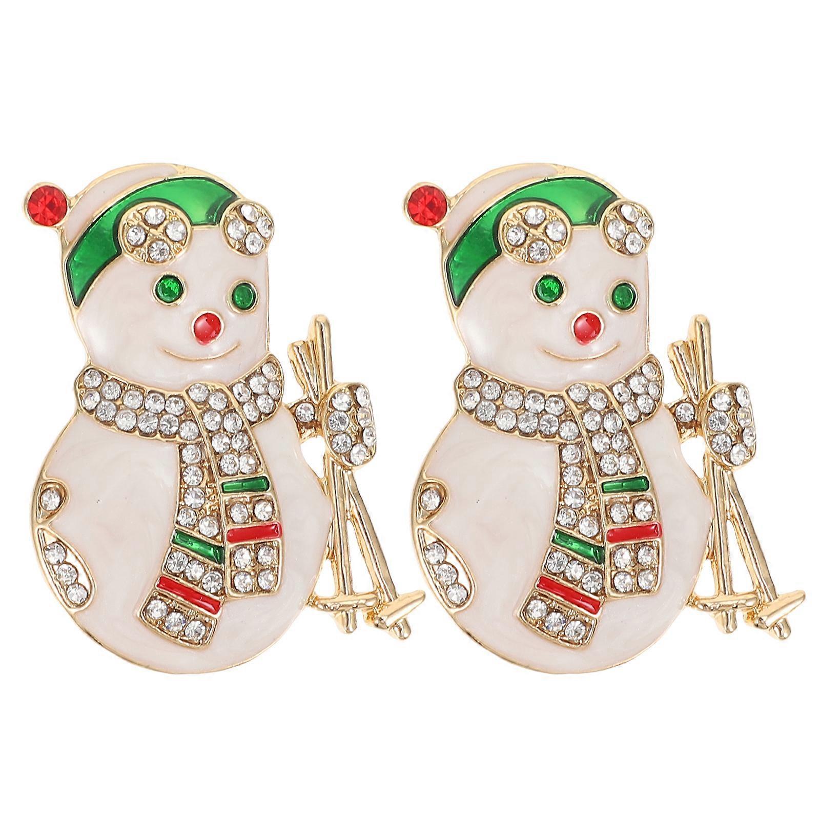 Brooch Snowman Brooches Clothing Decoration Christmas present White 4X3CM Zinc Alloy Rhinestone 2Pcs