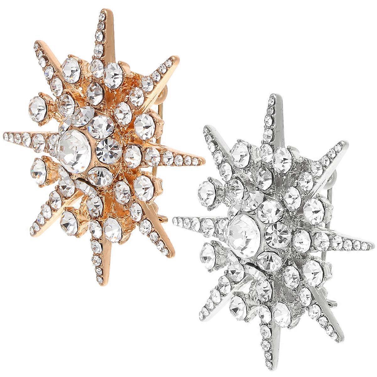 Assorted Color Alloy Brooch with Rhinestone Decoration for Elegant Corsage Decor 2 Pieces