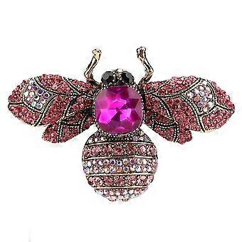 Brooch Jewelry Retro Bee Shape Alloy Attractive Decorative Rhinestones Pin Ornament for Coat Suit Rose Red