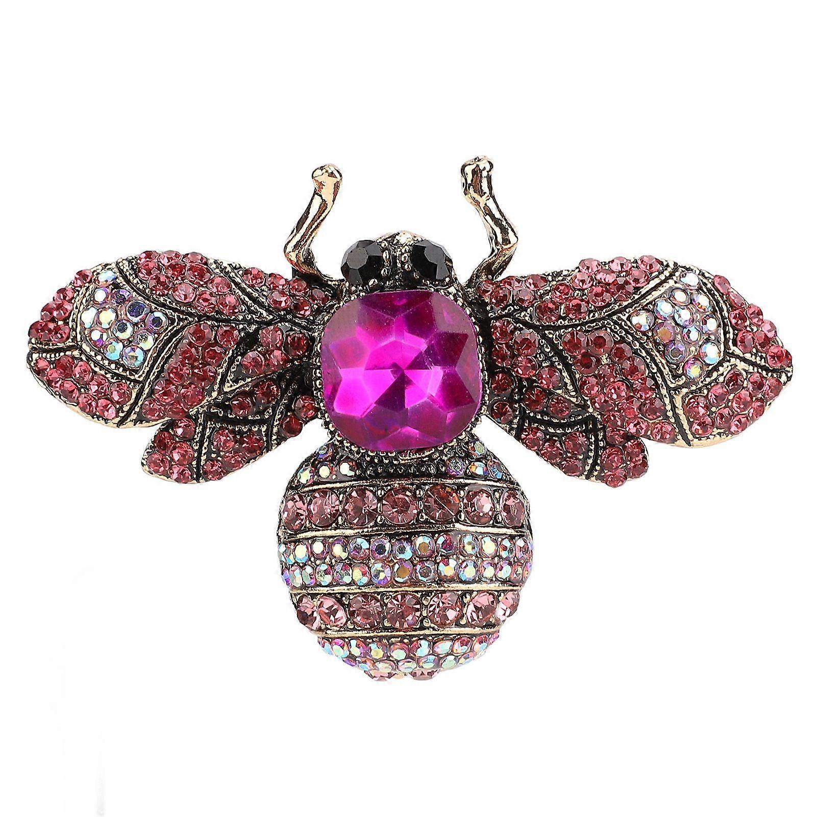 Brooch Jewelry Retro Bee Shape Alloy Attractive Decorative Rhinestones Pin Ornament for Coat Suit Rose Red