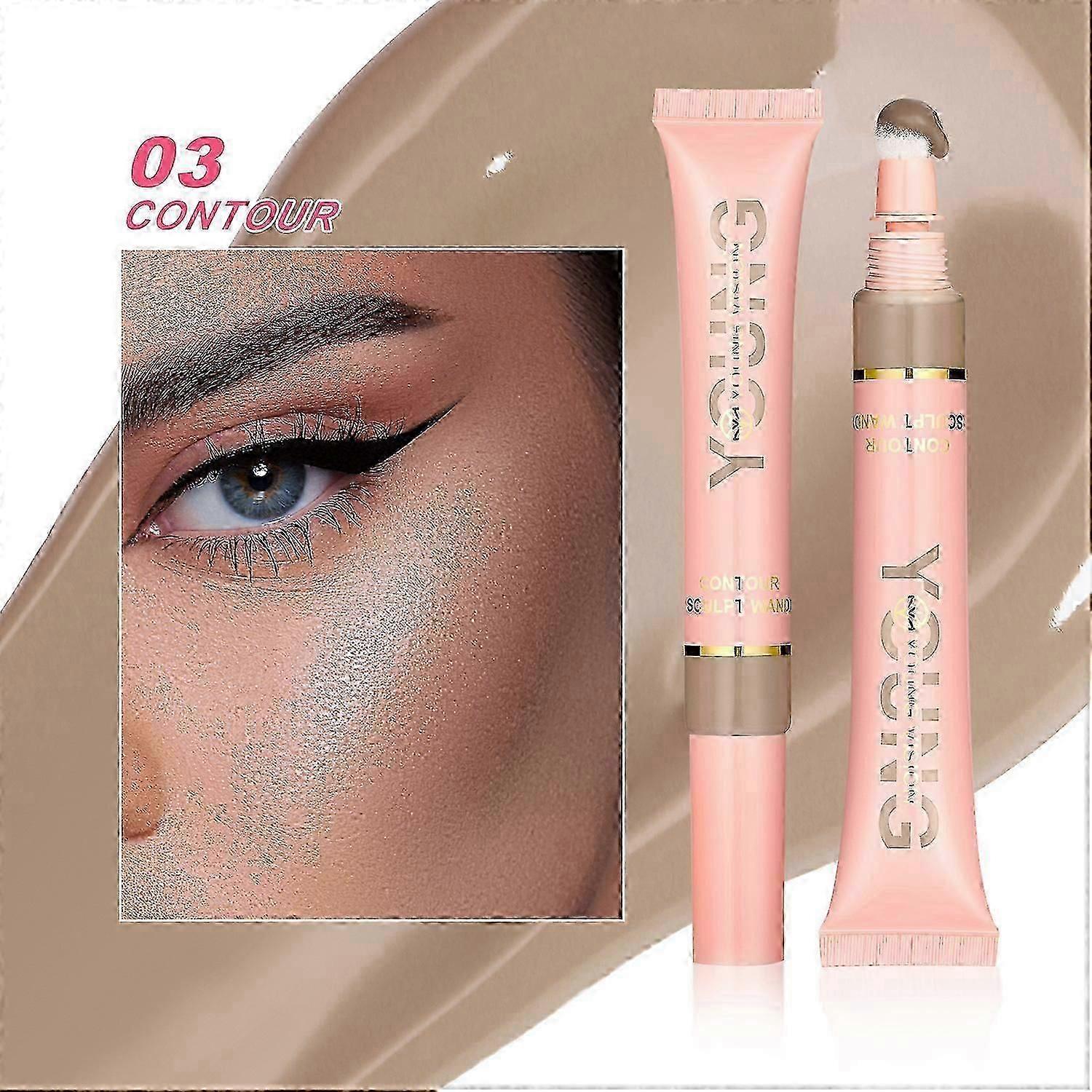Bronzer/Blush/Iluminador Liquido Stick, 3 Piezas Contorno Maquillaje, Beauty Blush con Esponja, Acabado Mate Natural Suave y Duradero