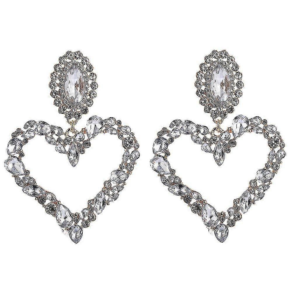 Glitter Rhinestone Heart Drop Earrings Women Fashion Jewelry Gifts