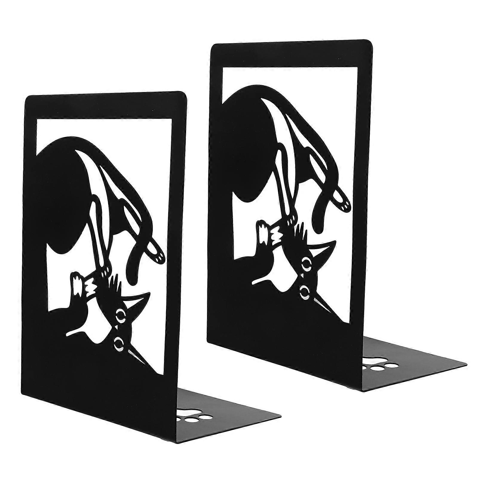 The sturdy construction ensures durability and stability, making the bookend a reliable addition to your desk or bookshelf. You can easily organize your books and keep them within reach. These are a must-have for any student or book lover looking to keep their study materials organized and easily accessible. Features - Color: Black -Material:Iron - Size: 17.00X12.00X9.00cm/6.68X4.72X3.54in - Designed with cat decor, the bookend is adorable and lovely, with good decorative effects. - Wide application, the book end is suitable for home, office, school, library, and used on the desktop, cabinet, shelf and so on. - The bookend is designed to organize your book on your desktop or cabinet, to prevent them falling. - With good workmanship and made of iron materials, the bookend is smooth with no burr, easy to to use. - The compact and lightweight design allows for effortless carrying and placement in any desired location. Package list: 2 x