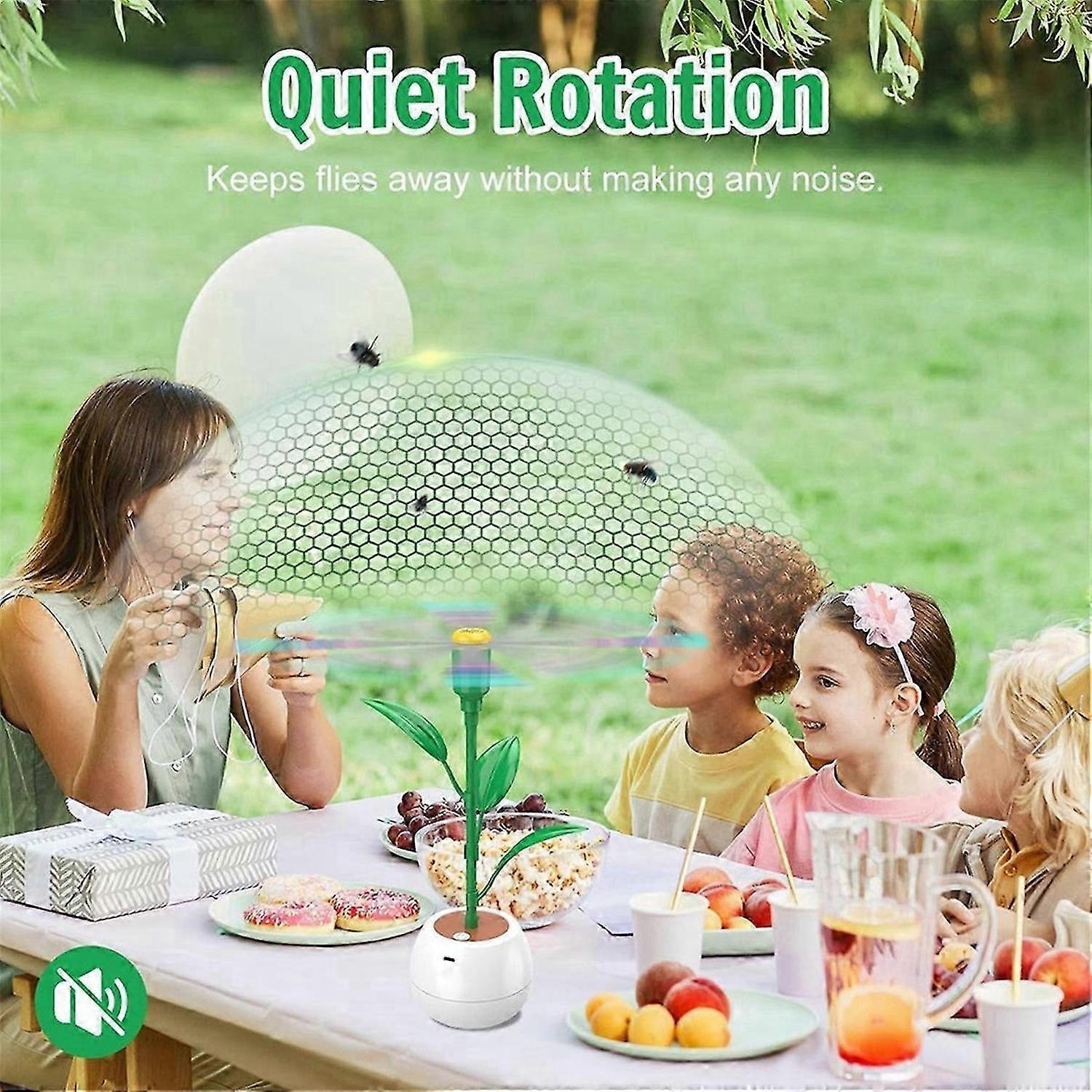 Battery-Powered Green Leaf Flower Pot Fly Repellent Fan PVC Fan Blade Fly Repellent Fan Hose Curved