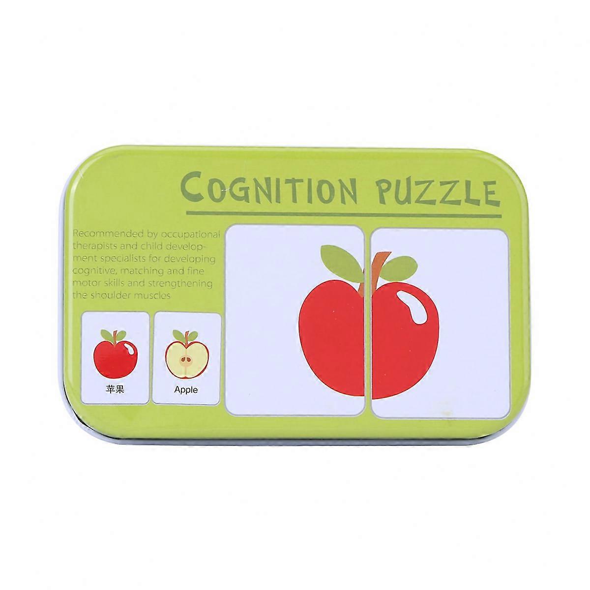 Preschool Cognitive Learning Puzzle Cards Educational Baby Toy with Fruits Theme and Durable Iron Storage Box for Early Development