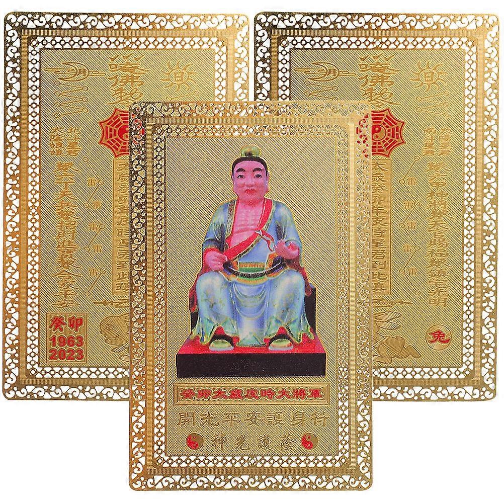 Chinese General Auspicious Cards Chinese Style Amulet General Taisui Card Collectors Golden 8X5X0.1cm Protection 3Pcs
