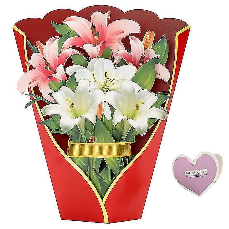 Paper -up Cards, Lilies Flower Bouquet 3d Popup Greeting Cards For Mom Mothers Day All Occasions