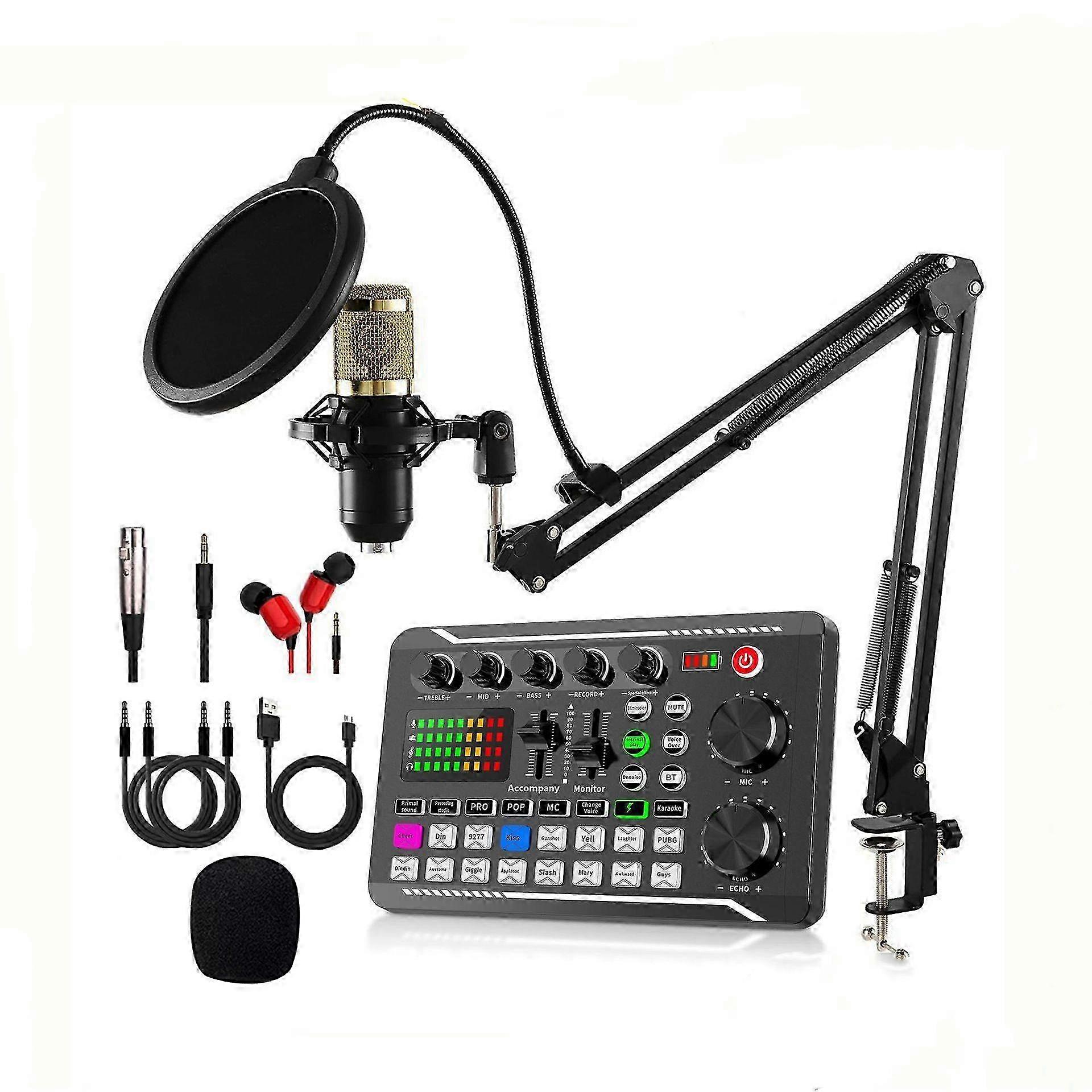 Live Sound Card with DJ Mixer Effects Voice Changer,BM800+F998 Live Audio Mixer