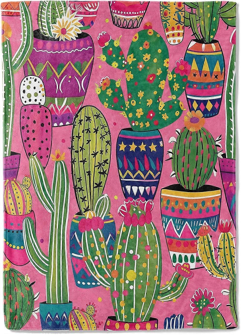 Colorful Cactus Pattern Flannel Throw Blanket Ultra-Soft, Lightweight&Warm, Cozy for All Seasons, Plush Anti-Pilling Cover for Lounging, Perfect for H