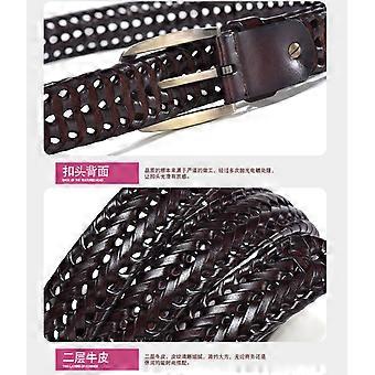 بقعة الجملة اليدوية المنسوجة حزام الرجال جلد البقر الأصلي الرجعية عارضة دبوس مشبك حزام أجوف قطعة واحدة لون جمل 120 سم