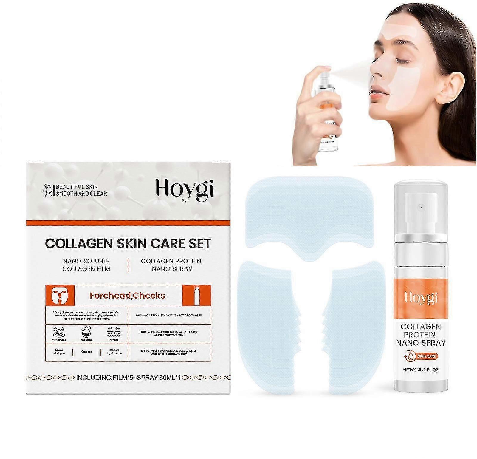 Hydrolyzed Collagen Patches,Moisturizing Skin Care Set 5Pcs Collagen Mask+60ml Collagen Spray,Anti Wrinkle Fimming & Tighten Collagen Mask
