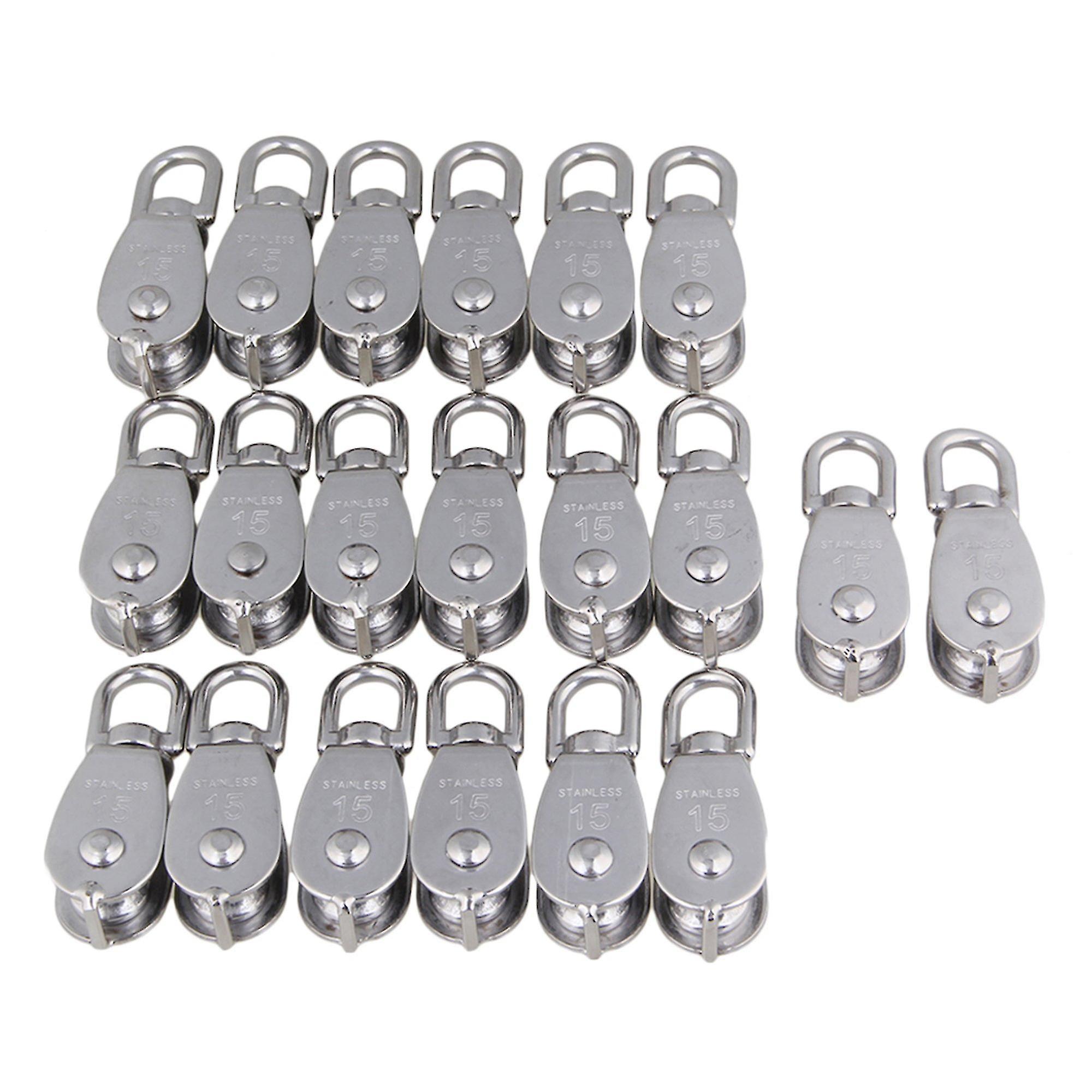 Pulleys, Blocks Sheaves 20 Pcs M15 Stainless Steel 304 Swivel Snatch Fixed Single Pulley Block