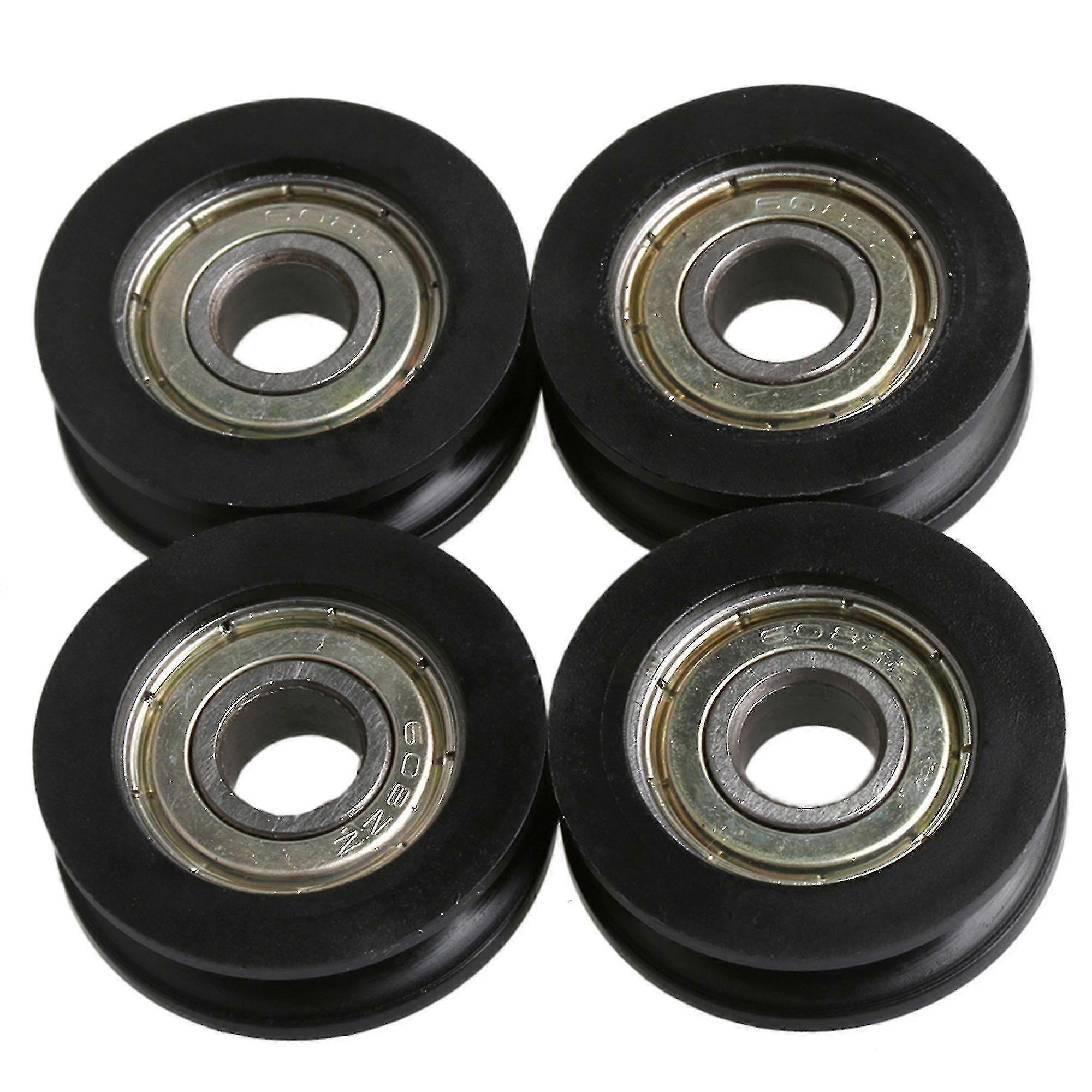 Pulleys, Blocks Sheaves 4pcs U-type Groove Wheels Roller Bearing Pulley Black 3x1cm - JA