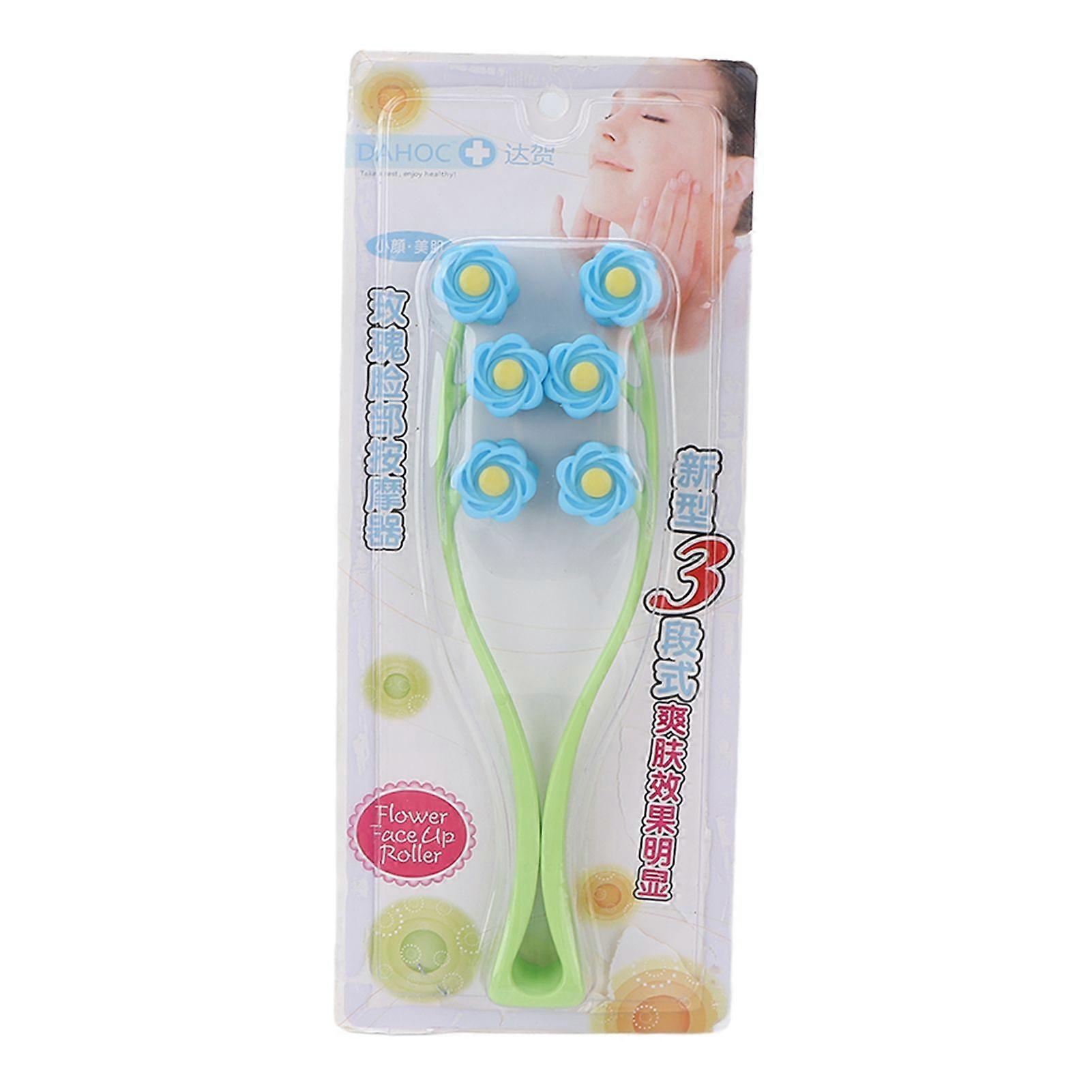 Face Roller Multiple Rollers Concave Convex Particles Comfortable Handle Multiple Rollers V Shaped Face MassagerBlue