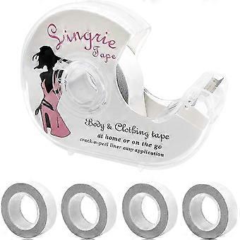 One Knife Roller and 4 Rolls of Tape Double Sided Clothing Tape, Clear Fabric Strong Tape for Dress, Clothes, Medical Grade Tape