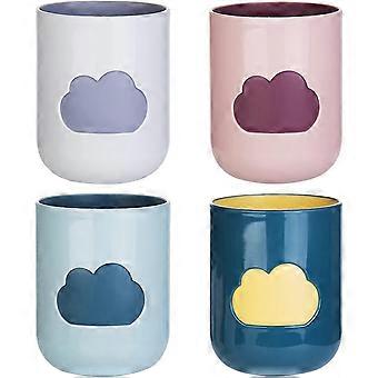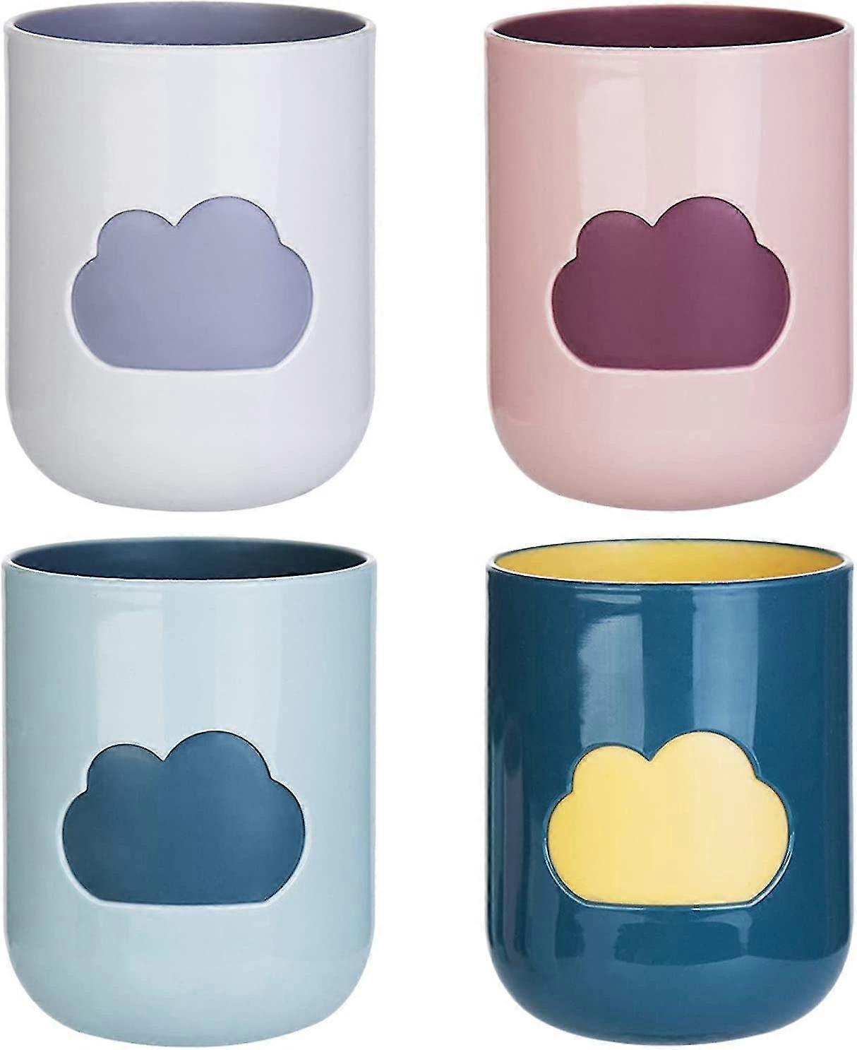 Plastic Tumbler, 4 Pieces Toothbrush Tumbler Mouthwash Cup Travel Mouthwash Cup Cloud Pattern Design For Picnics, Outdoor And Home Parties (4 Colors)