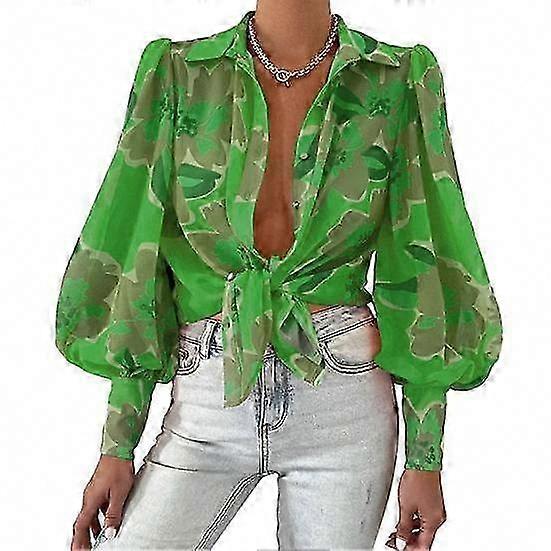 Floral-Printed Women's Long-Sleeve Lapel Puff Blouse with Loose Fit and Professional Style