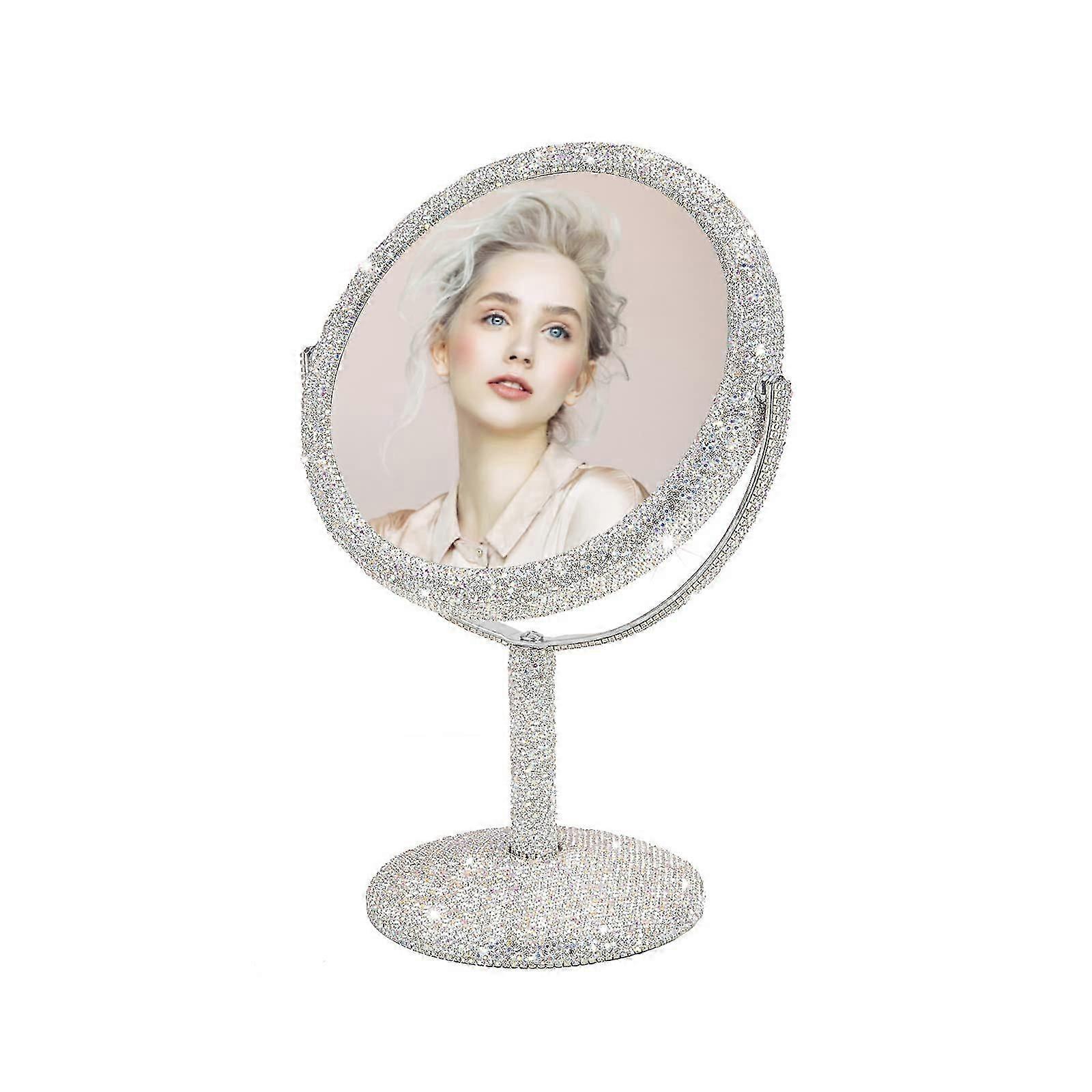 Bling Rhinestone Double-Sided Vanity Mirror with Cosmetic Glitter for Desk and Bathroom, Round Makeup Mirror in Elegant Design