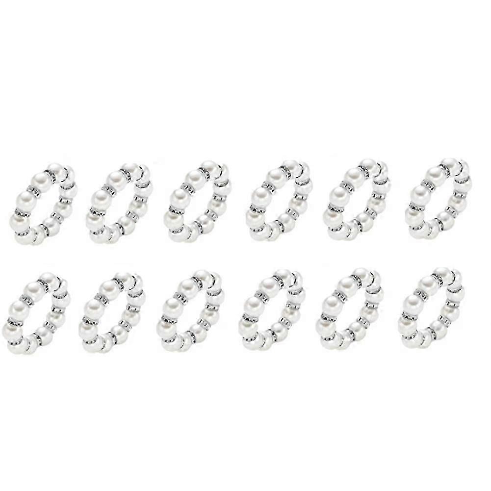 Bling Pearl Napkin Rings Set of 12,Rhinestone Napkin Ring Holder for Dinner Wedding Family Gatherin