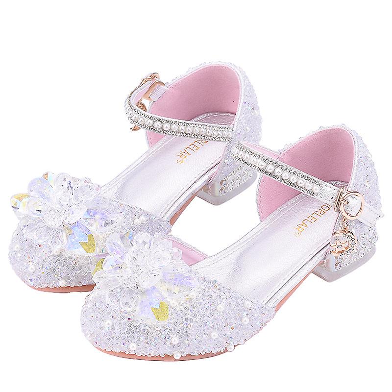 Girls Mary Jane Rhinestones Glitter Shoes Low Heel Princess Flower Wedding Party Pump Shoes For Girls Toddler
