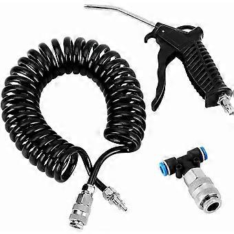 Air Blow Gun With 5 Meter Black Coil Hose 5*8mm Dust Gun For Truck/Van/Heavy Truck (With 2*6mm T-Type Quick Connector)