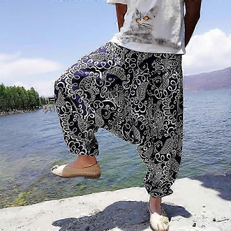 Comfortable Unisex Harem Pants in Cotton Linen Blend for a Relaxed British Summer Look