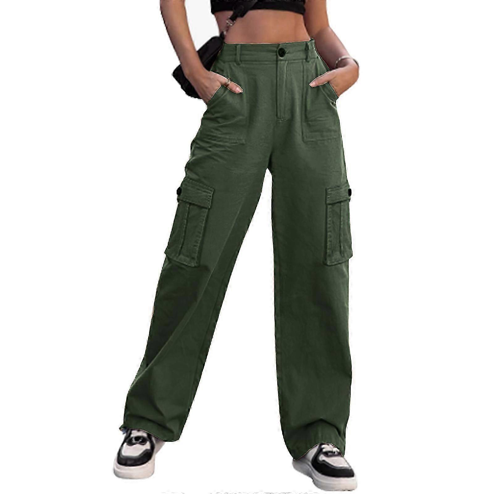 Versatile Womens Wide Leg Pants with 6 Pockets and High Waist Military Trousers Black XL