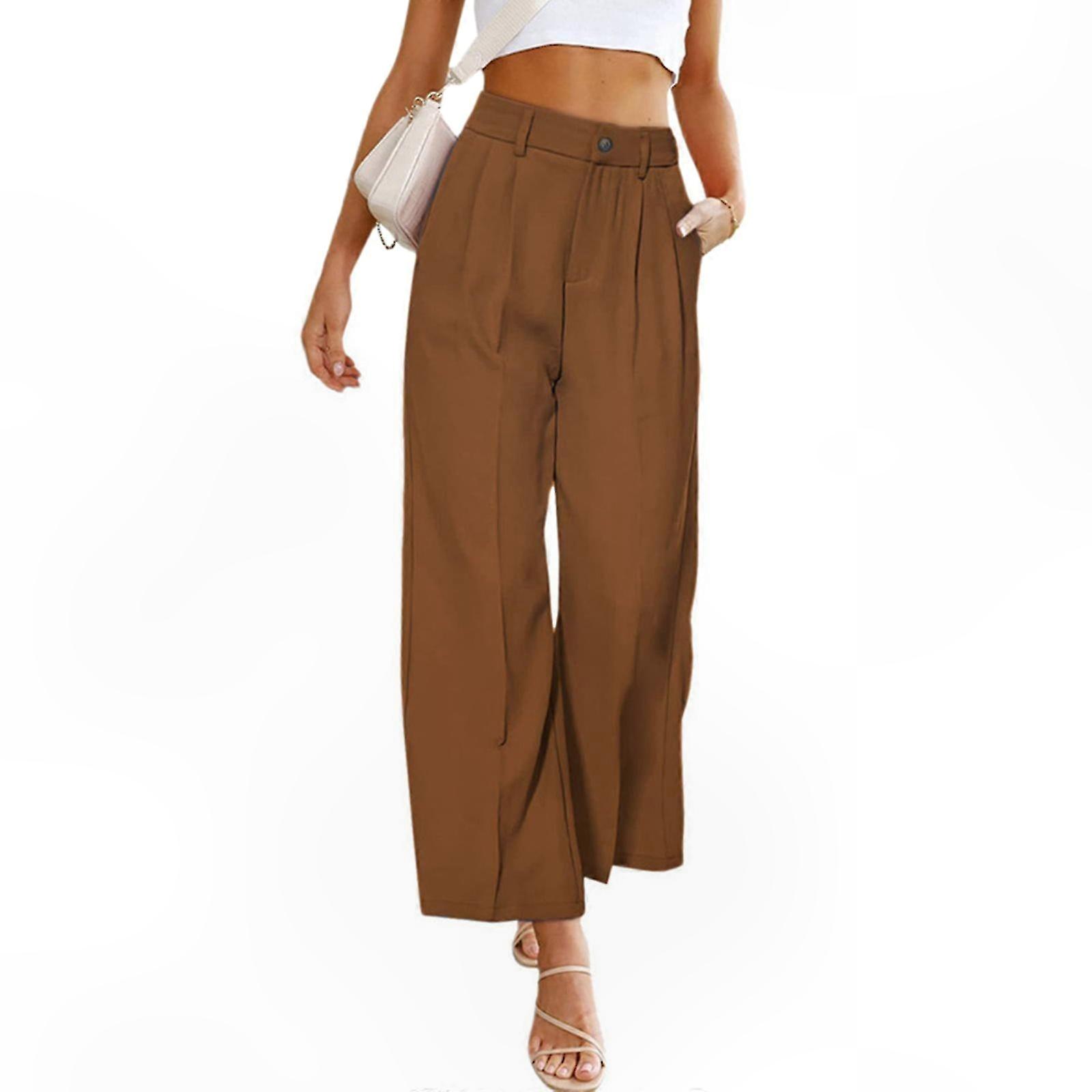 Dark Brown High Waist Wide Leg Trousers for Women - Elastic Casual Ankle Length Pants 3XL