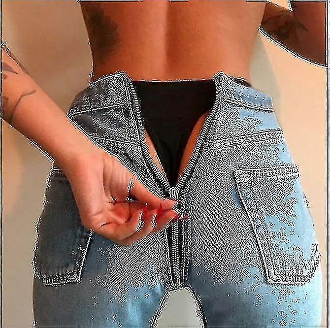 Womens Denim Zip Open Back Distressed High Waist Skinny Jeans Trousers Pants-yujia