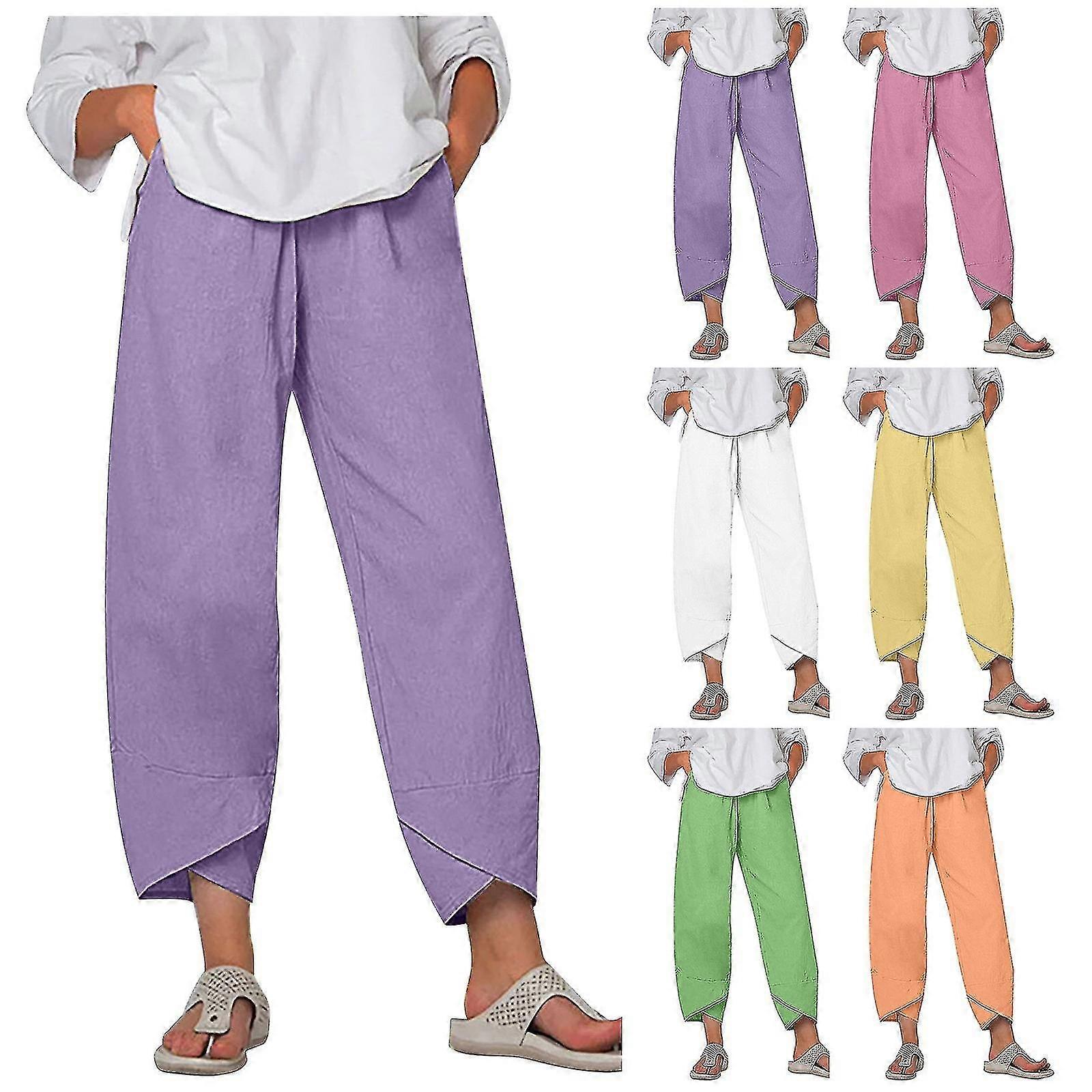 Trousers Cotton Casual Home Women's Women's Solid Color Cotton Linen High Waist Casual Pants