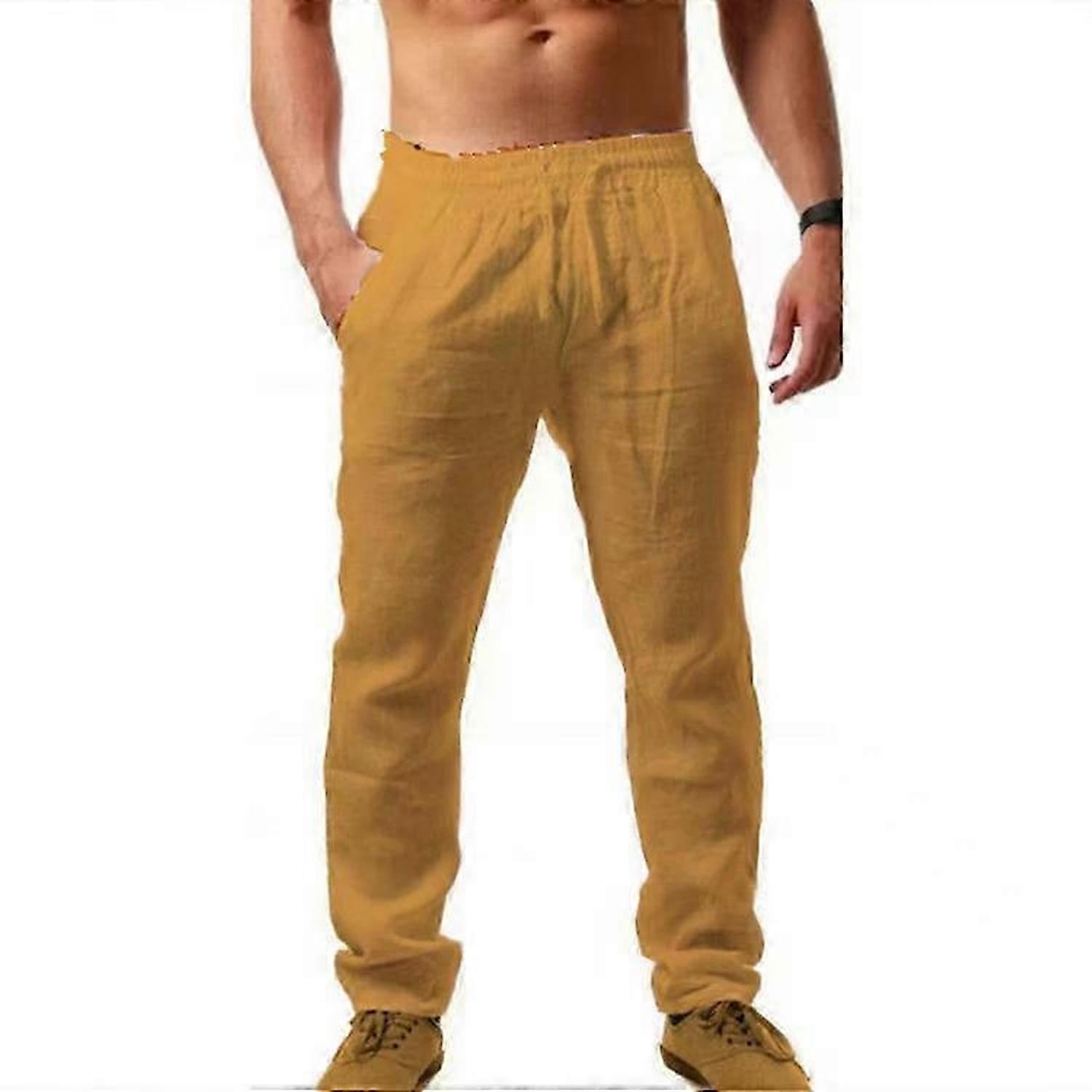 Men's Linen Pants Lightweight Breathable Summer Trousers with Drawstring Casual Long Pants for Yoga, Beach & Travel