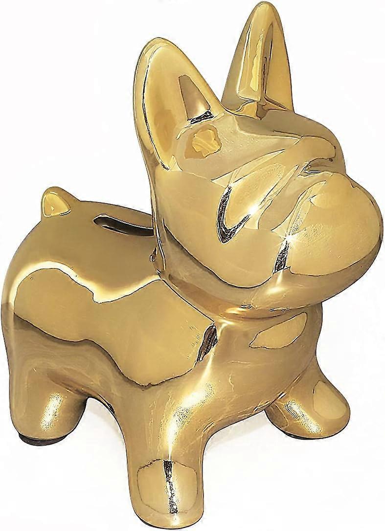 Ceramic Bulldog Piggy Bank for Boys Girls, Money Box for Kids, Coin Bank Keepsake with Plastic Stopper, French Bulldog Saving Jar, Nursery Dcor (Golde