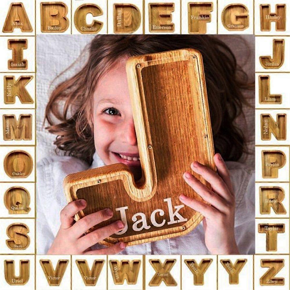 Wooden Piggy Bank Creative Twenty-six English Letters Crafts Desktop Ornament Home Decor School Gift for Kids