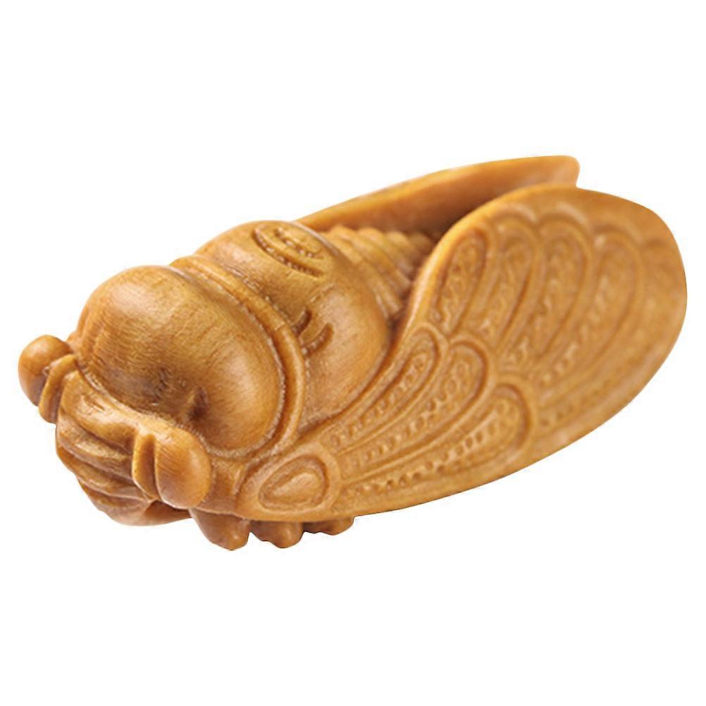 Light Brown Cicada Shape Wooden Sculpture Home Decoration Desk Accessory Carved Craft 1Set