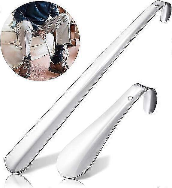 Stainless Steel Shoe Horn, Long Metal Shoe Horn Pack of 2 Shoe Horn - 42 & 16 cm, Long Stainless Steel, Very Sturdy Design Ideal for Travel