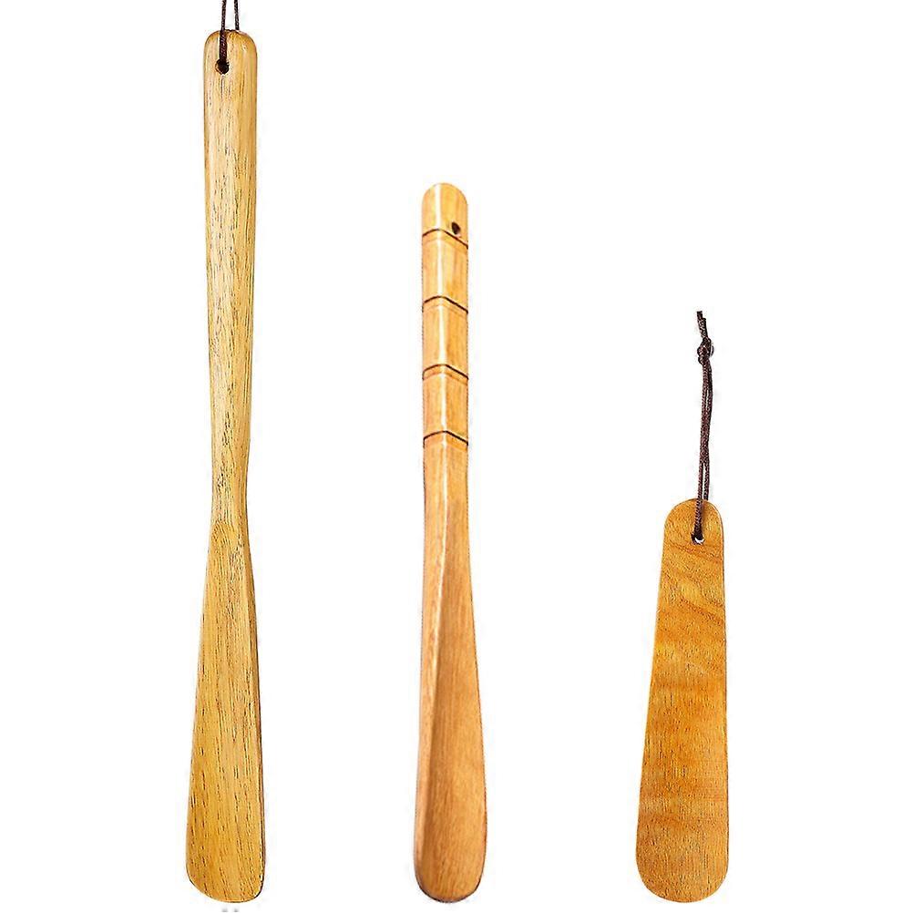 Portable Bamboo Wood Shoe Horn for Seniors with Ergonomic Design Brown 3 Pieces